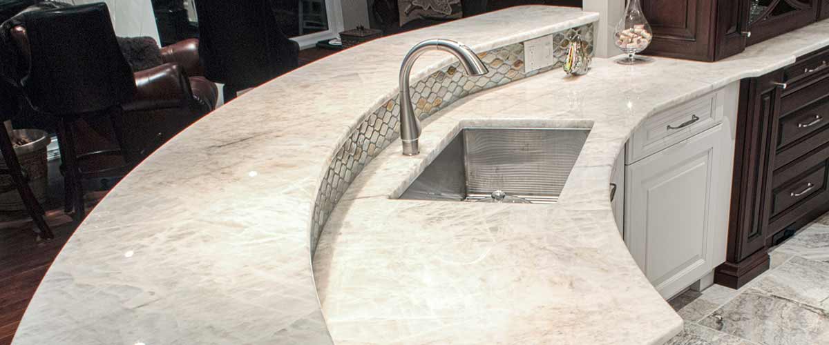 Quartzite is a natural stone formed by the crystallization of sandstone due to heat and pressure underground. Some quartzite are opaque and some are so translucent that light can shine through them. In its’ purest form it’s white like marble, but can have impurities in it that lead to some incredible patterns and colors.